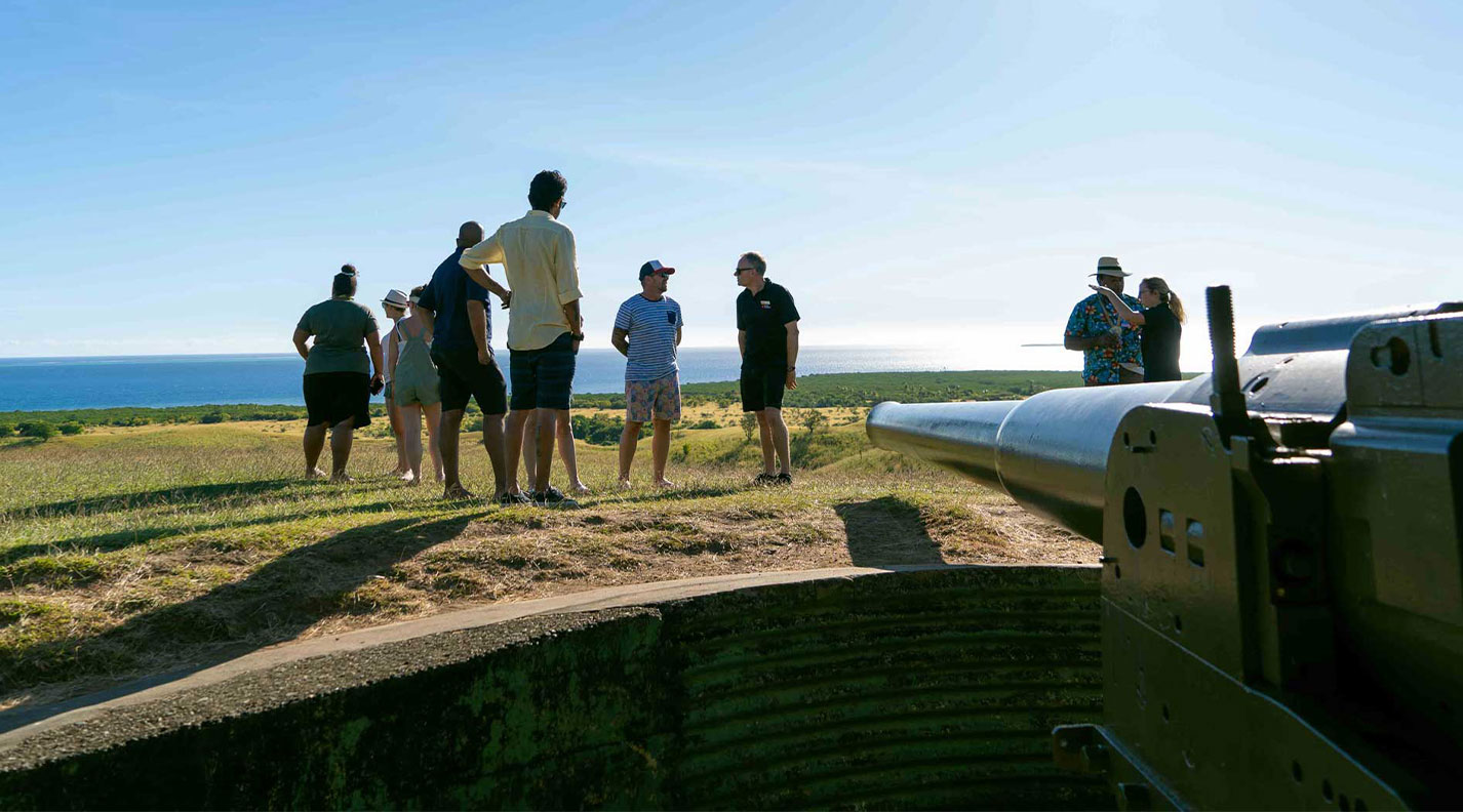 Momi Gun Site tour The road leaves the Queens Highway and climbs through fields...
