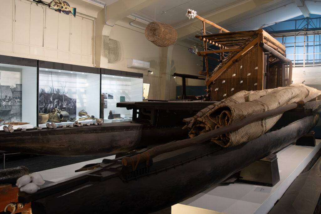 Walking into the museum today, you’ll immediately see why it’s so unforgettable. In the first gallery—almost like stepping into a voyager’s tale—rests the majestic Ratu Finau, a 13-metre-long double-hulled canoe, the last drua ever made in 1913. It’s a testament to Fiji’s remarkable maritime heritage.